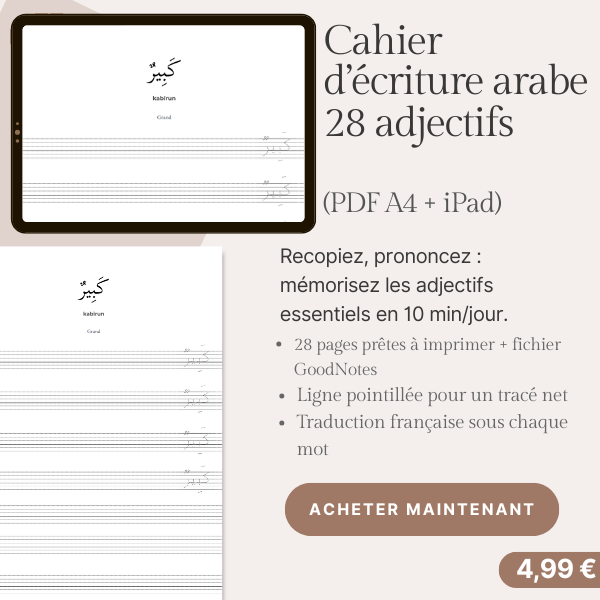 Apprendre les Adjectifs en Arabe – Livre d’Exercices Calligraphie & Traduction